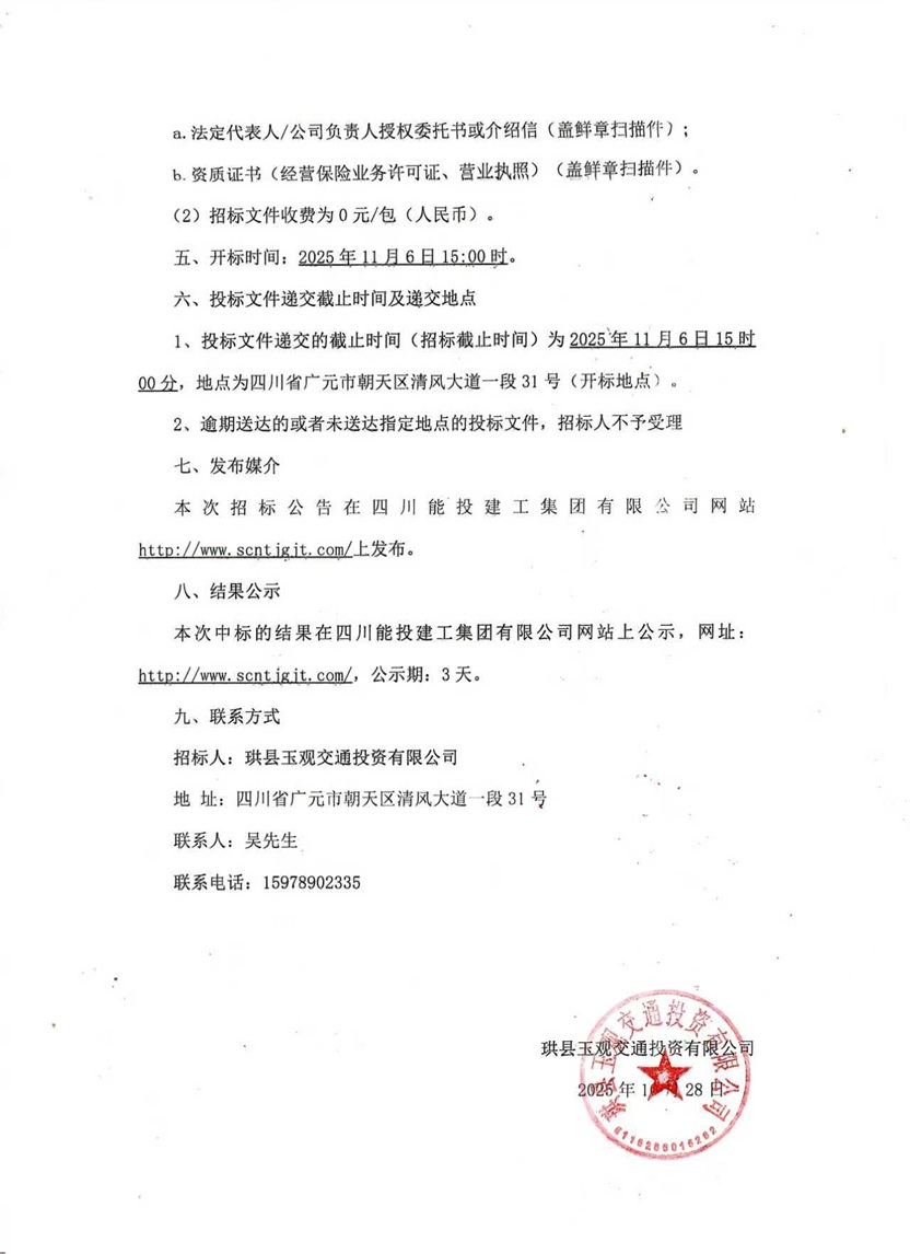 S436玉和至观斗二级公路升级改造工程PPP项目运营期道路及附属设施财产保险招标公告