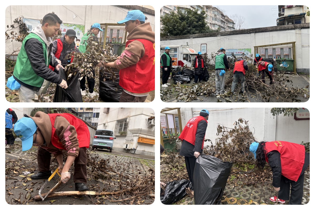 接着,团总支志愿者们分成多个小组,手执垃圾袋、夹子等清洁工具前往老旧小区,沿着道路两侧,细致入微地清理着路边、草丛中的塑料袋、饮料瓶、烟头等白色污染物以及雨后形成的残枝败叶。大家分工协作,配合紧密,确保每一个角落都得到彻底清理。尽管天气寒冷,下着毛毛细雨,但志愿者们的热情却丝毫未减,他们不怕脏、不怕累,充分彰显了团员的先锋模范风采。
