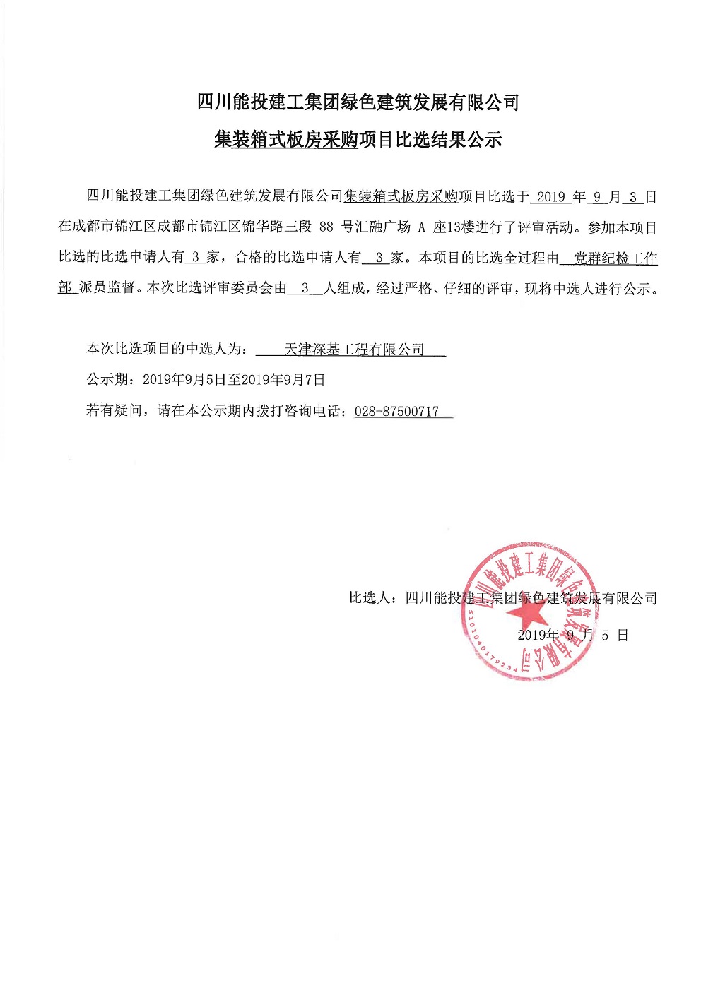 四川能投建工集团绿色建筑发展有限公司集装箱式板房采购项目比选结果公示