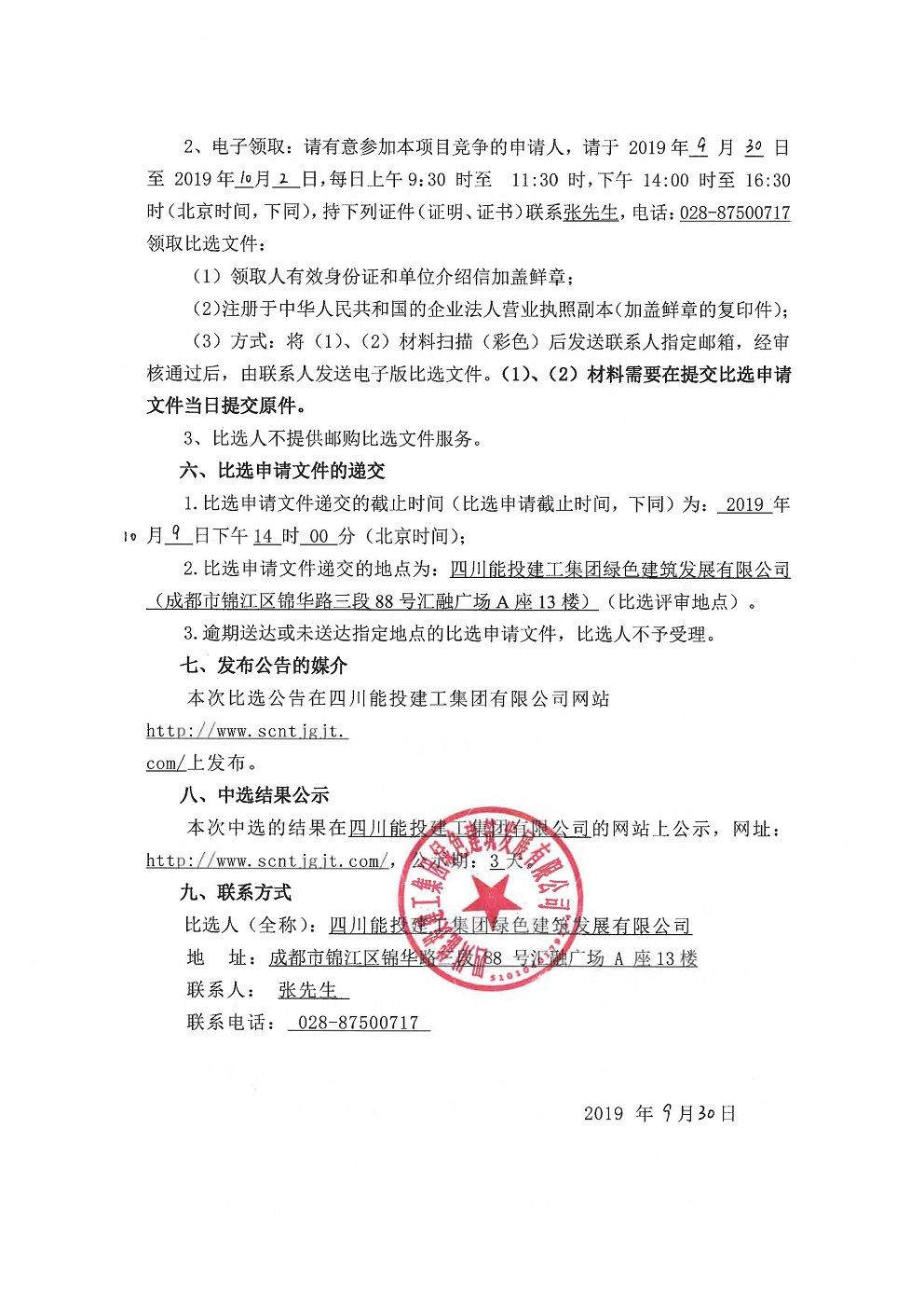 四川能投建工集团绿色建筑发展有限公司空调采购比选公告