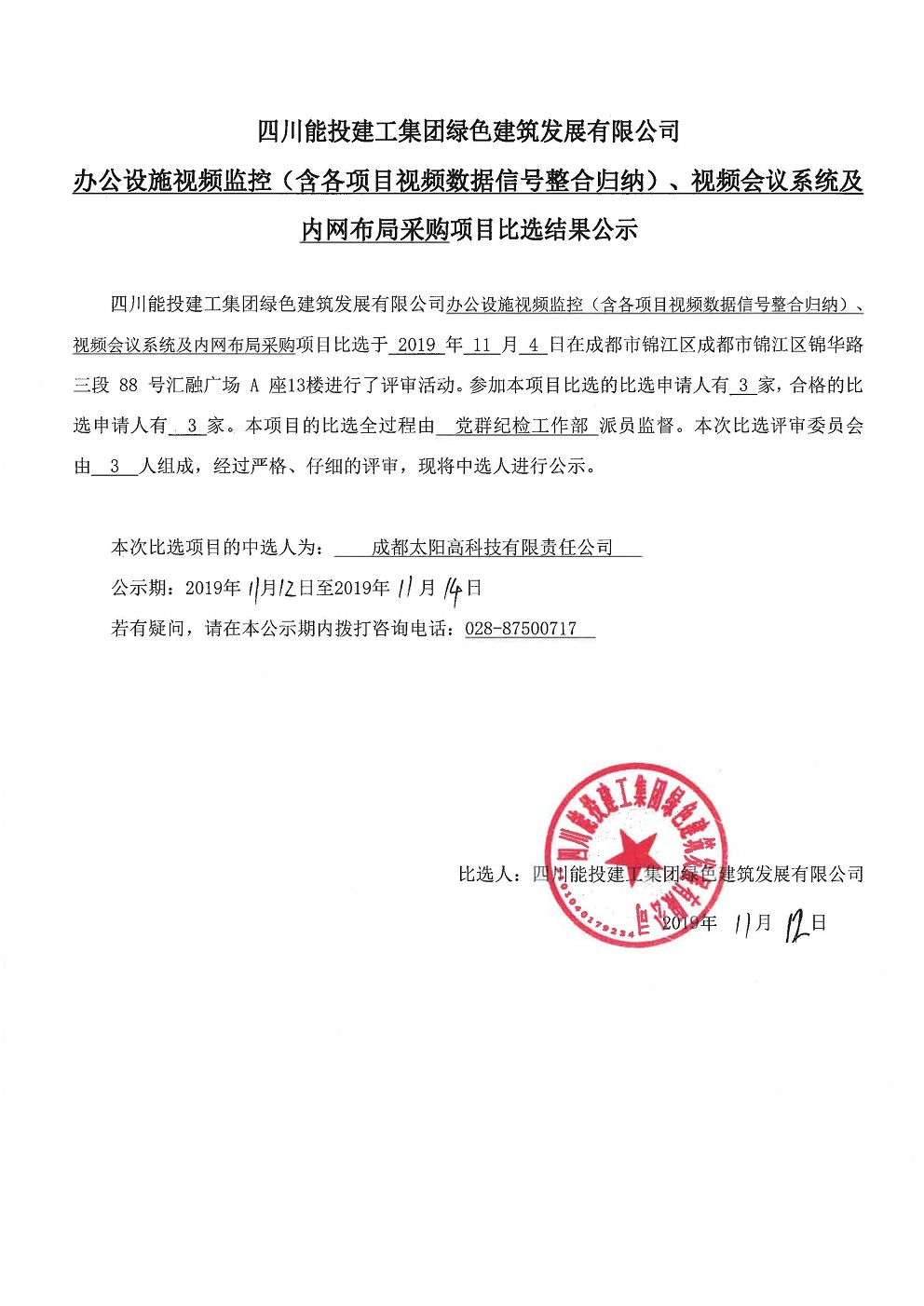 办公设施视频监控、视频会议系统及内网布局采购比选结果公示