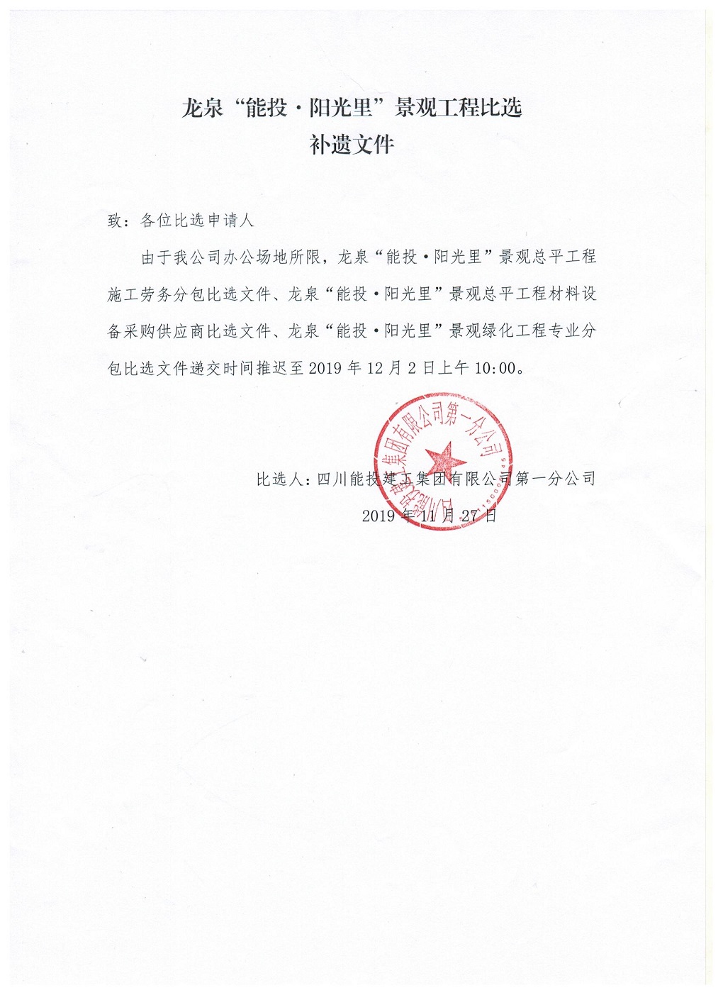 龙泉“能投·阳光里”景观工程比选补遗文件