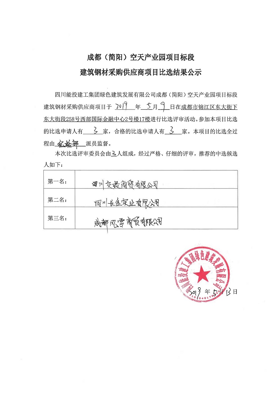 四川能投建工集团绿色建筑发展有限公司建筑钢材采购供应商项目比选结果公示