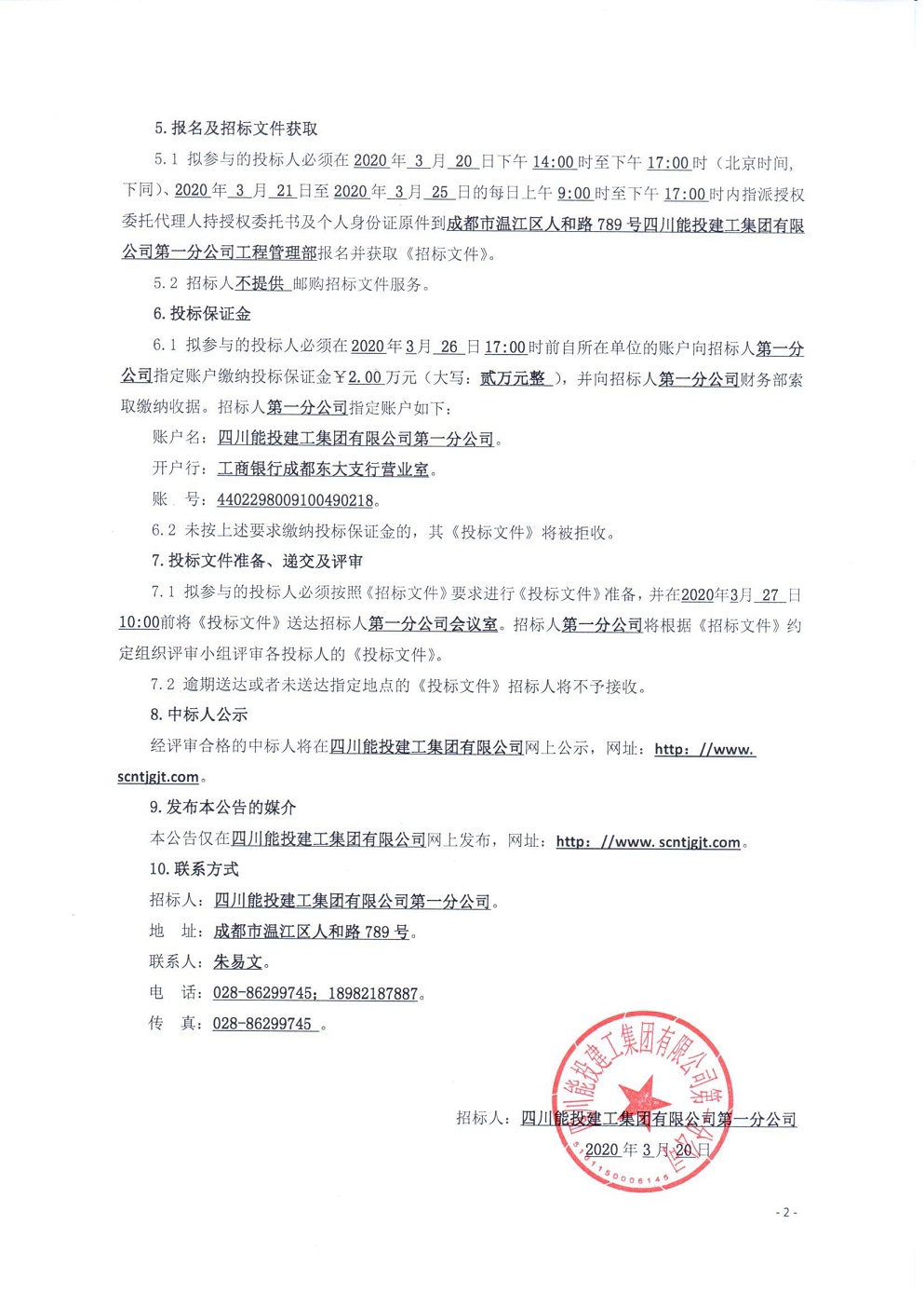 四川能投化学新材料有限公司制氮装置项目土建工程中标结果公示