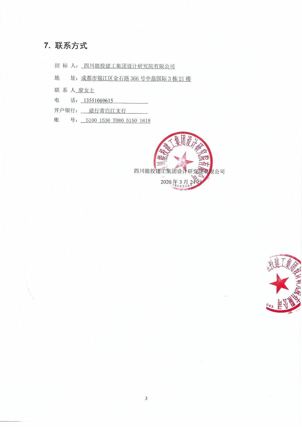 四川能投化学新材料有限公司制氮装置项目土建工程中标结果公示