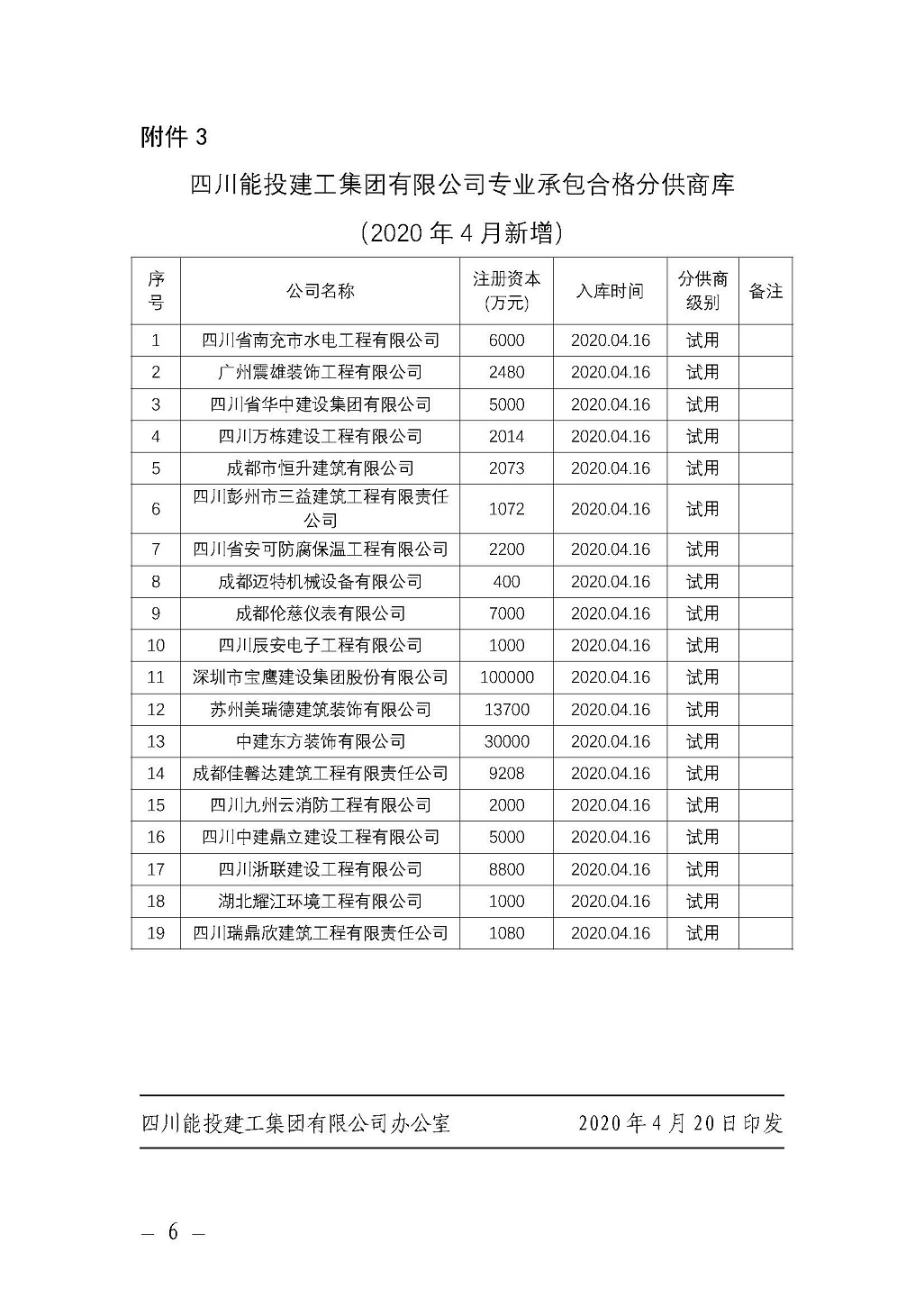 关于发布2020年4月新增《合格分供商库名单》的通知