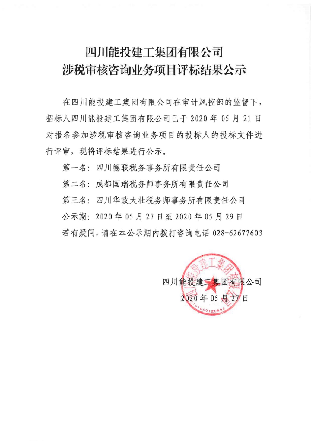 乐动网页版涉税审核咨询业务项目评标结果公示