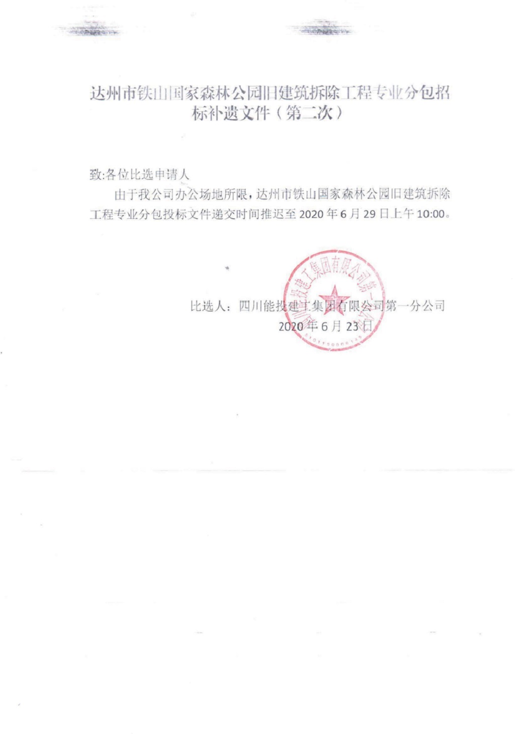 达州市铁山国家森林公园旧建筑拆除工程专业分包招标补遗文件(第二次)