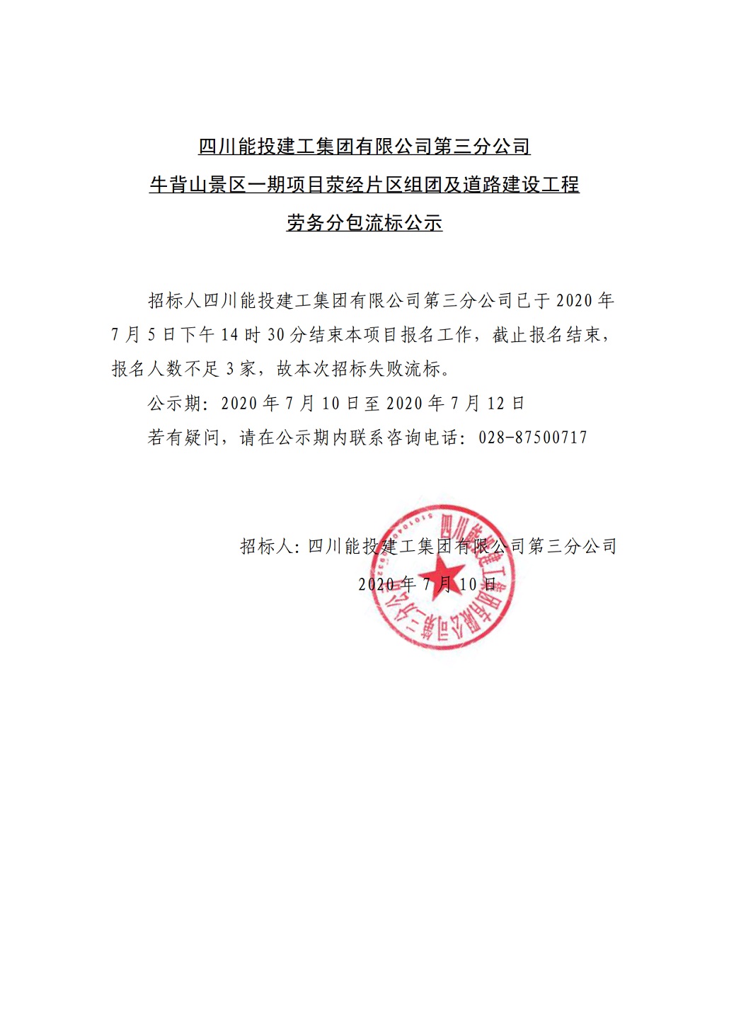 荥经片区劳务招标流标公示