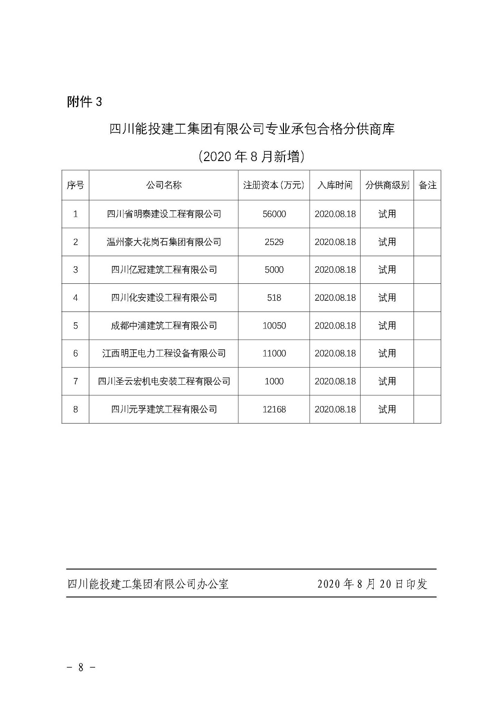 关于发布2020年8月新增《合格分供商库名单》的通知