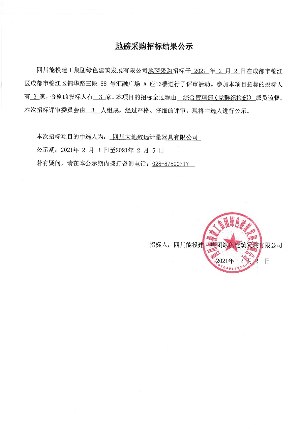 地磅采购招标结果公示