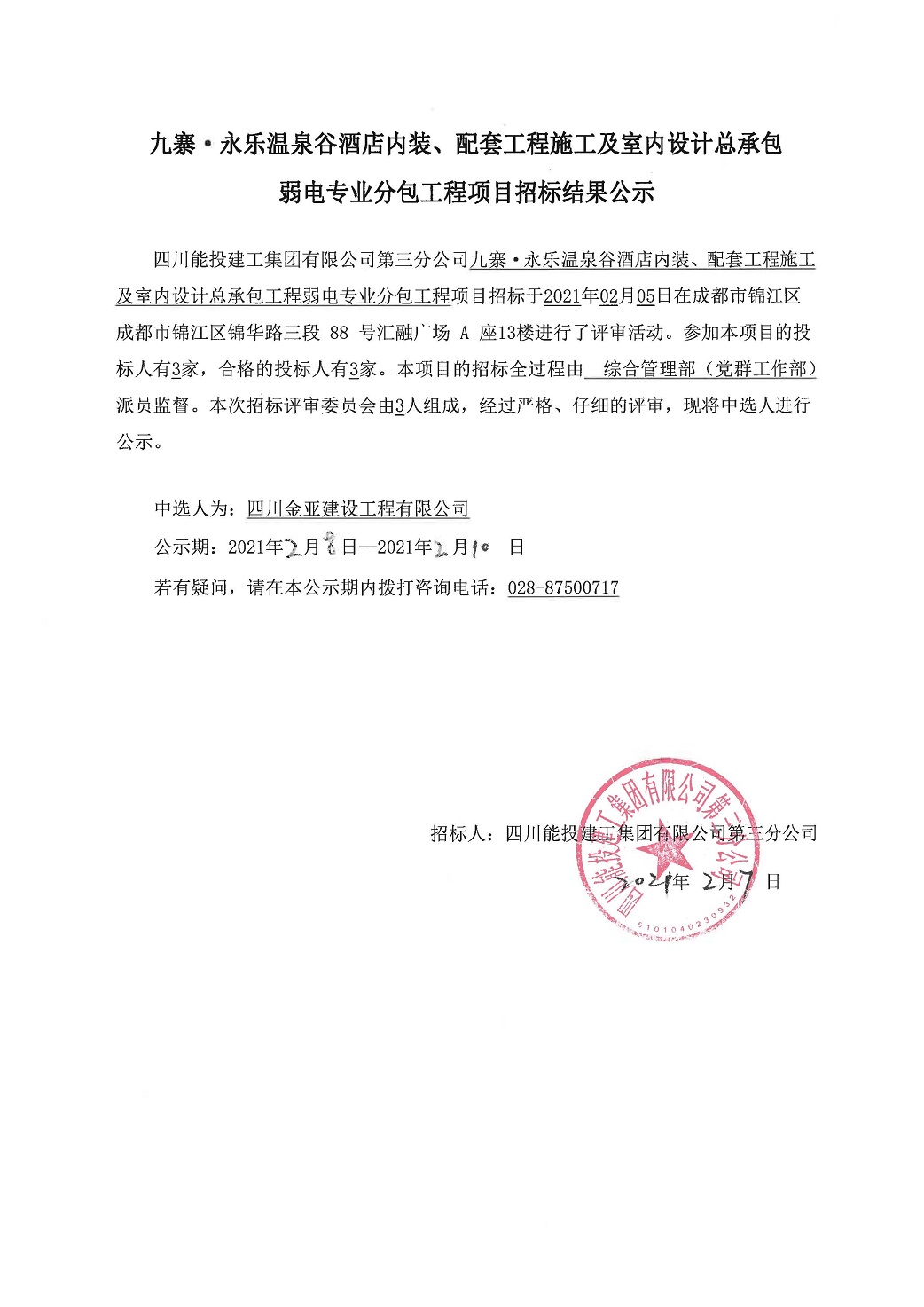 下一条:九寨.永乐温泉谷酒店内装、配套工程施工及室内设计总承包工程德尔塔酒店精装修专业分包工程招标结果公示