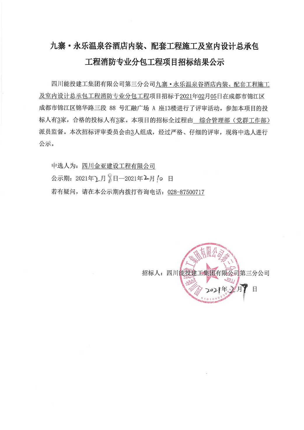 下一条:九寨.永乐温泉谷酒店内装、配套工程施工及室内设计总承包工程弱电专业分包招标结果公示