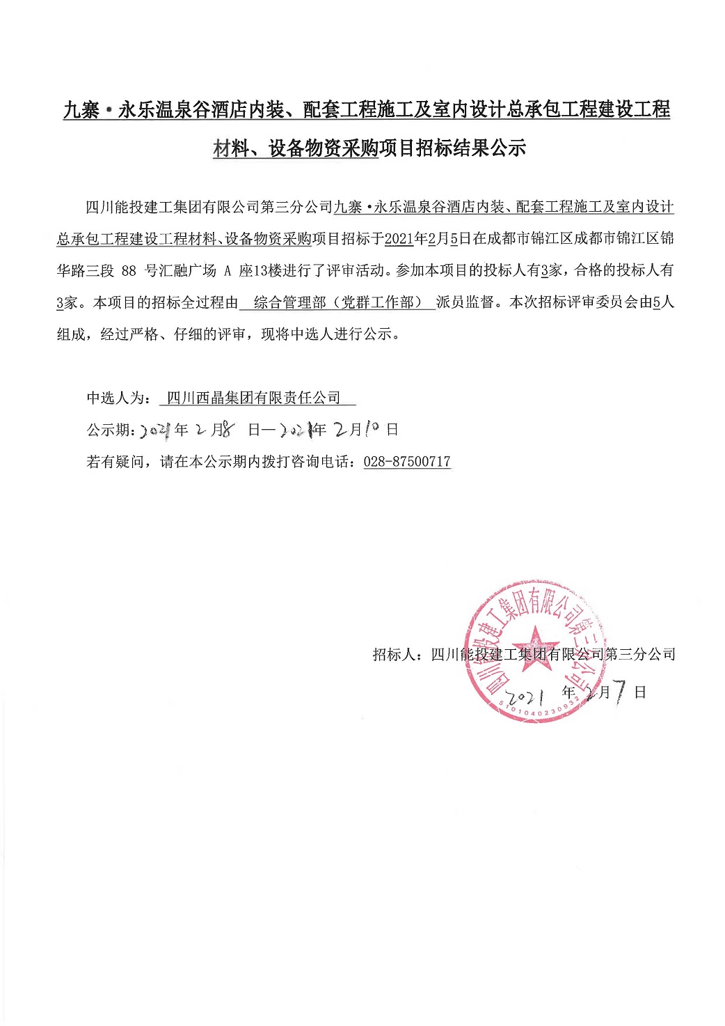 下一条:九寨.永乐温泉谷酒店内装、配套工程施工及室内设计总承包工程建设工程劳务分包(万怡酒店精装修)招标结果公示