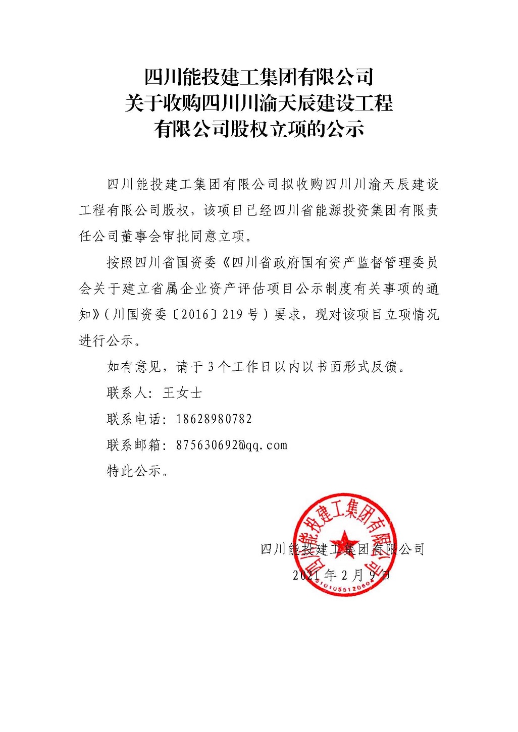 乐动网页版关于收购四川川渝天辰建设工程有限公司股权立项的公示