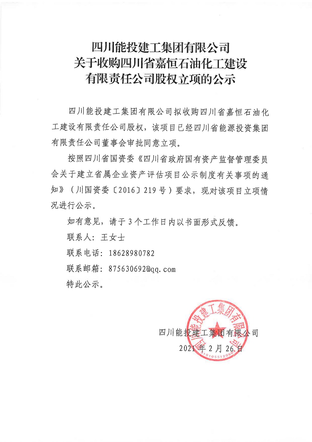乐动网页版关于收购四川省嘉恒石油化工建设有限责任公司股权立项的公示