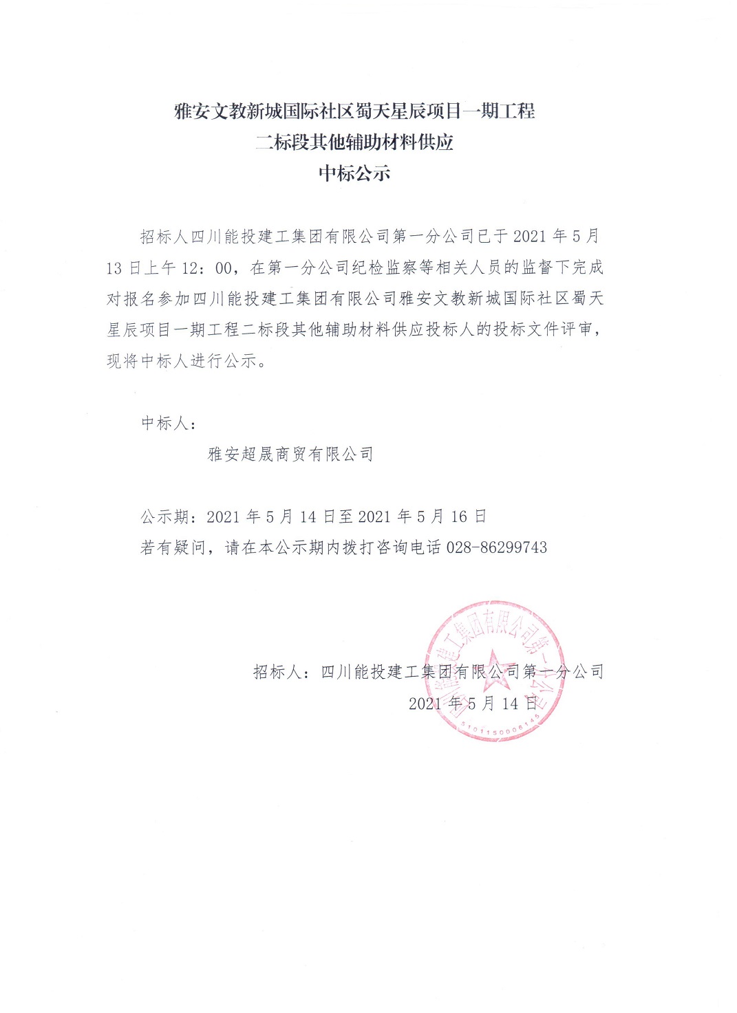 下一条:雅安文教新城国际社区蜀天星辰项目一期工程二标段主要材料(商砼、水泥、型钢、砂石骨料)供应招标流标公示