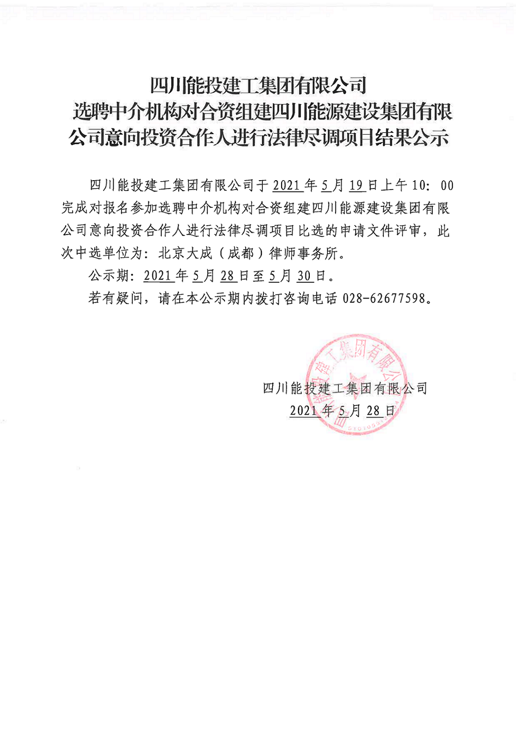 乐动网页版选聘中介机构对合资组建四川能源建设集团有限公司意向投资合作人进行法律尽调项目结果公示