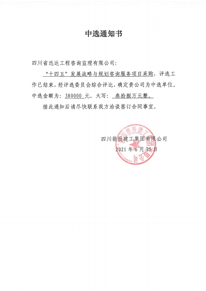 中选通知书