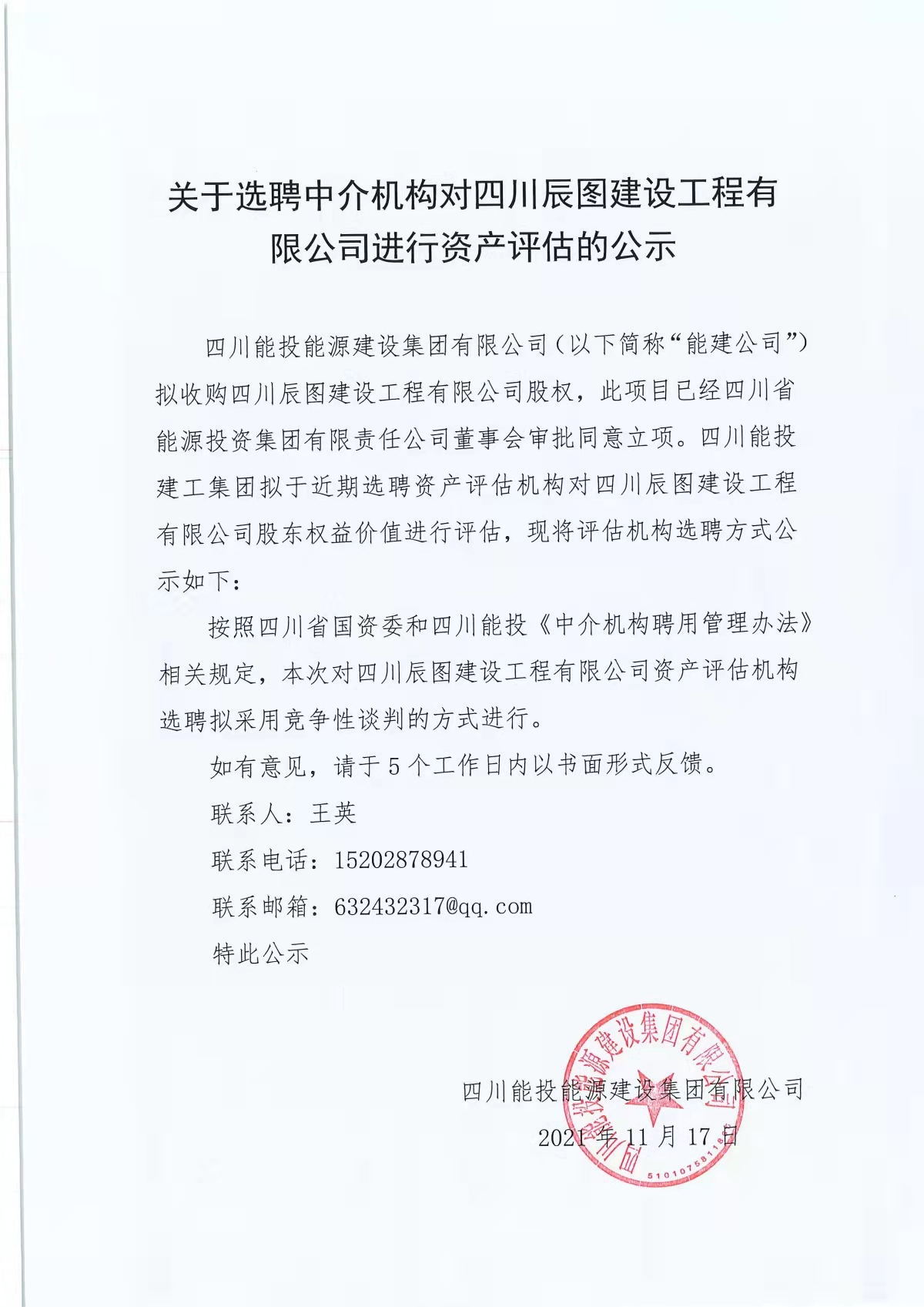 关于选聘中介机构对四川辰图建设工程有限公司进行资产评估的公示