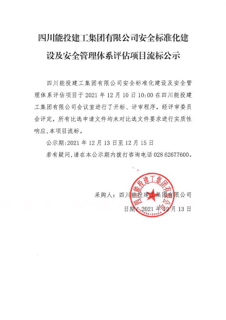 安全标准化建设及安全管理体系评估流标公示