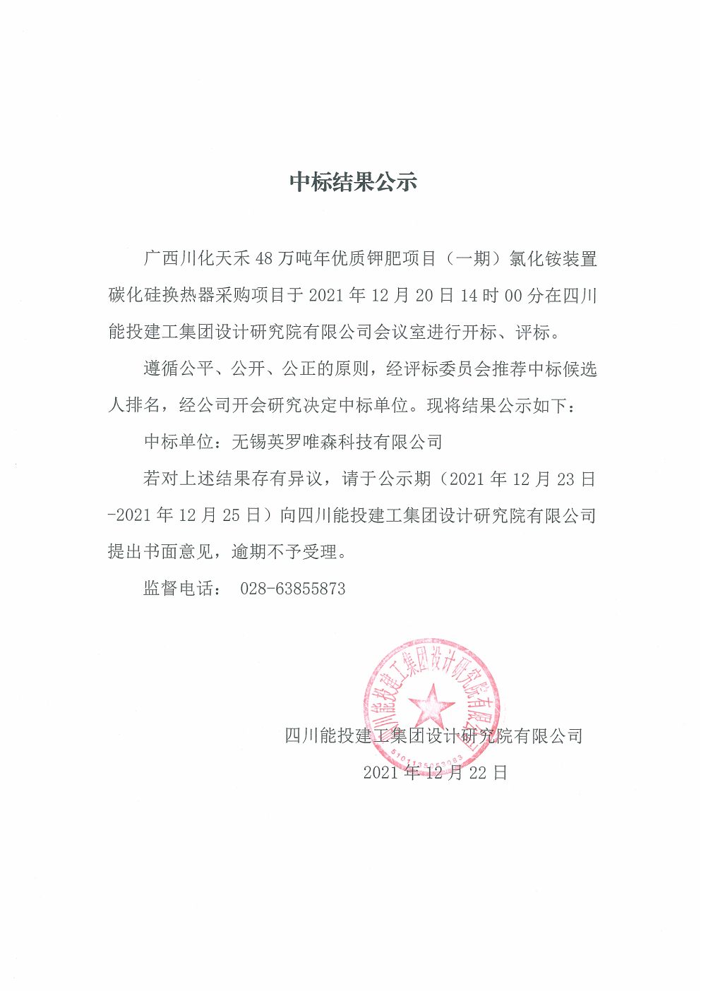 中标结果公示