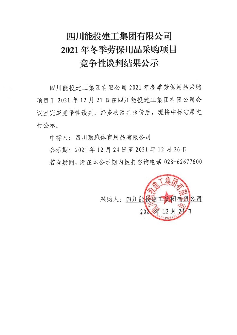 2021年冬季劳保用品采购项目竞争性谈判结果公示