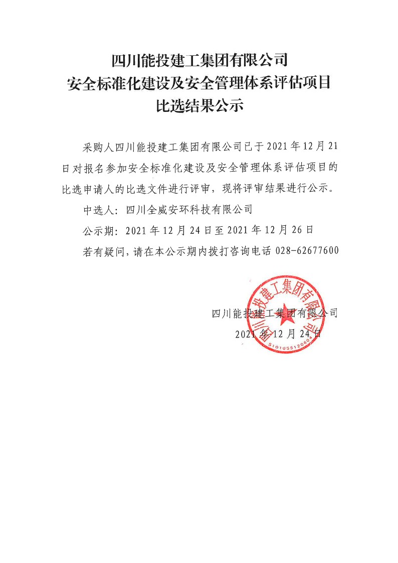 安全标准化建设及安全管理体系评估项目比选结果公示