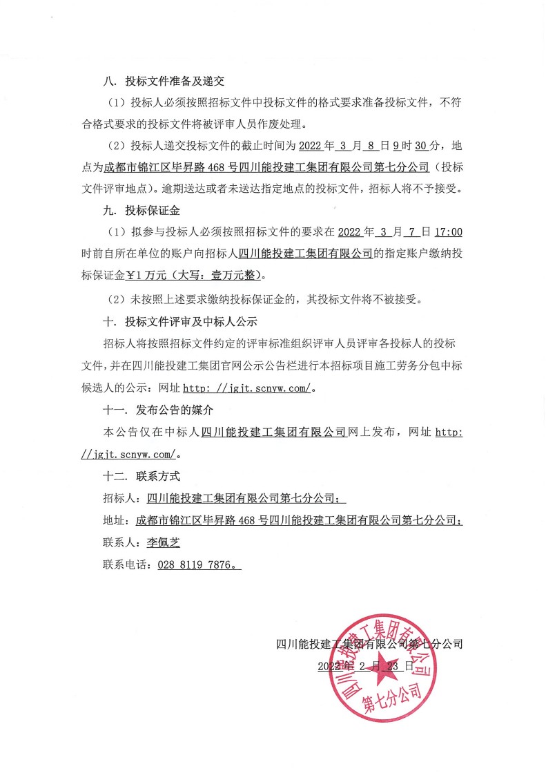 四川能投天府云数据产业基地建设项目(一期)施工劳务分包招标公告