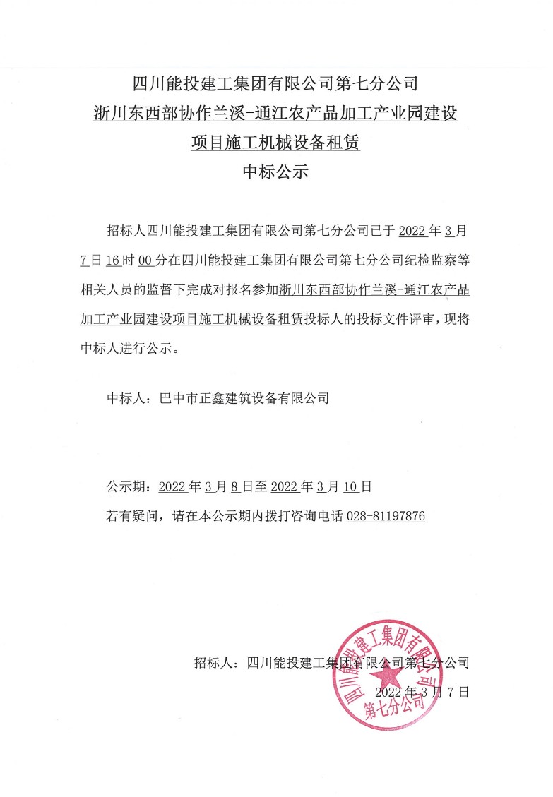 上一条:浙川东西部协作兰溪-通江农产品加工产业园建设项目施工土石方、桩基及临时设施建设专业分包中标公示
