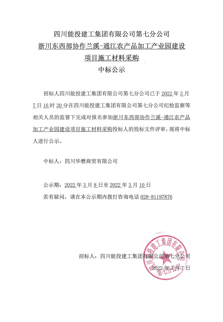 浙川东西部协作兰溪-通江农产品加工产业园建设项目施工材料采购中标公示