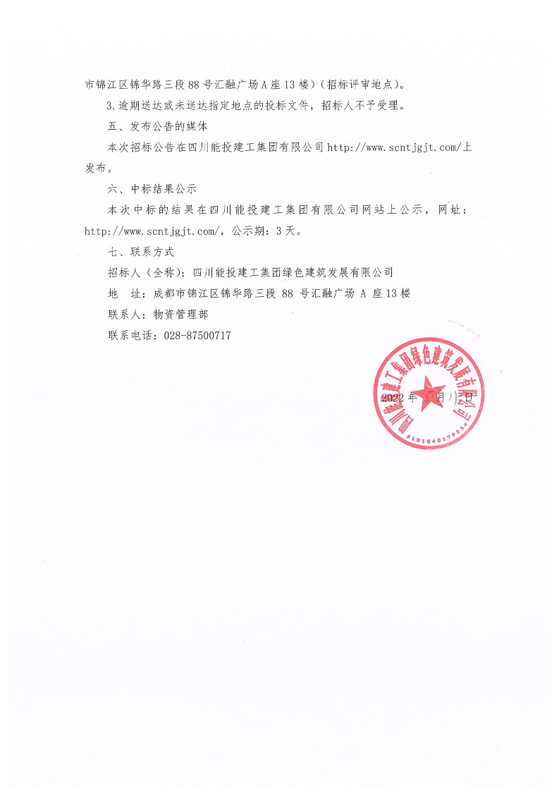 2022年第一批次幕墙辅材采购招标公告