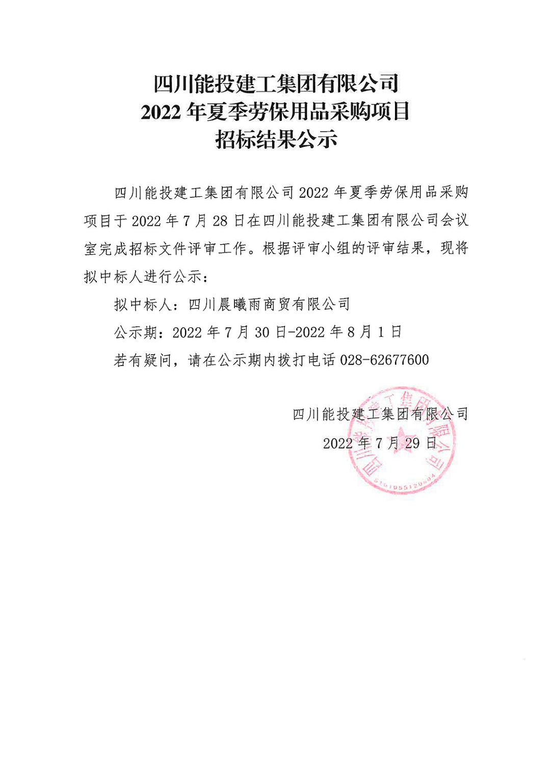 乐动网页版2022年夏季劳保用品采购项目招标结果公示