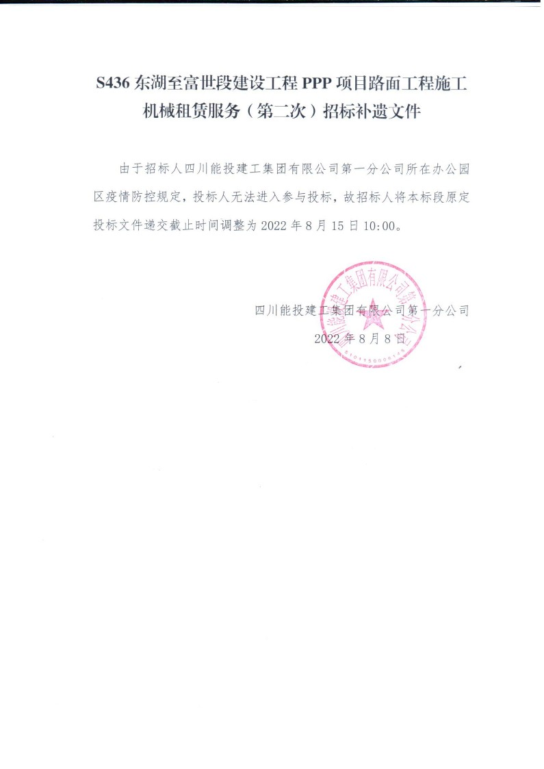 上一条:S436东湖至富世段建设工程PPP项目路面工程施工劳务分包(第二次)招标补遗文件