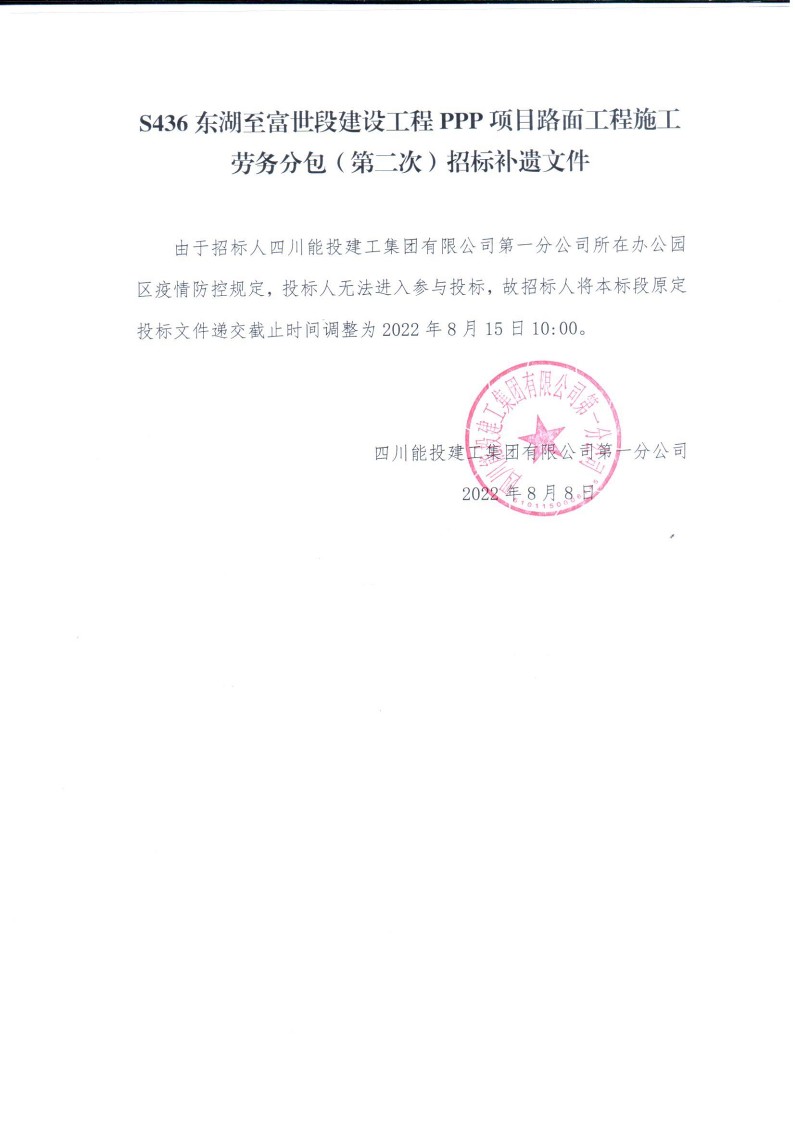 S436东湖至富世段建设工程PPP项目路面工程施工劳务分包(第二次)招标补遗文件