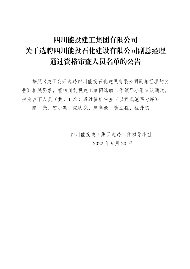 关于选聘四川能投石化建设有限公司副总经理通过资格审查人员名单的公告