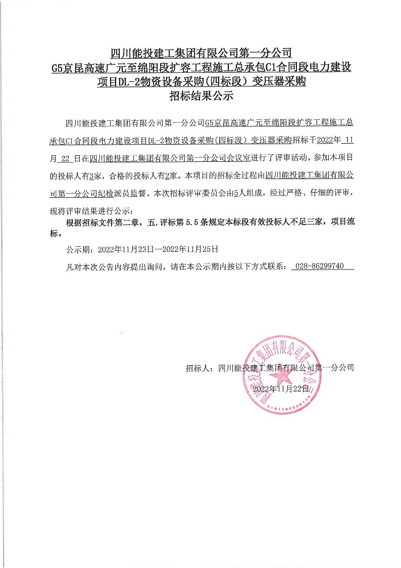 下一条:G5京昆高速广元至绵阳段扩容工程施工总承包C1合同段电力建设项目DL-2物资设备采购(三标段)一次、二次设备采购招标结果公示