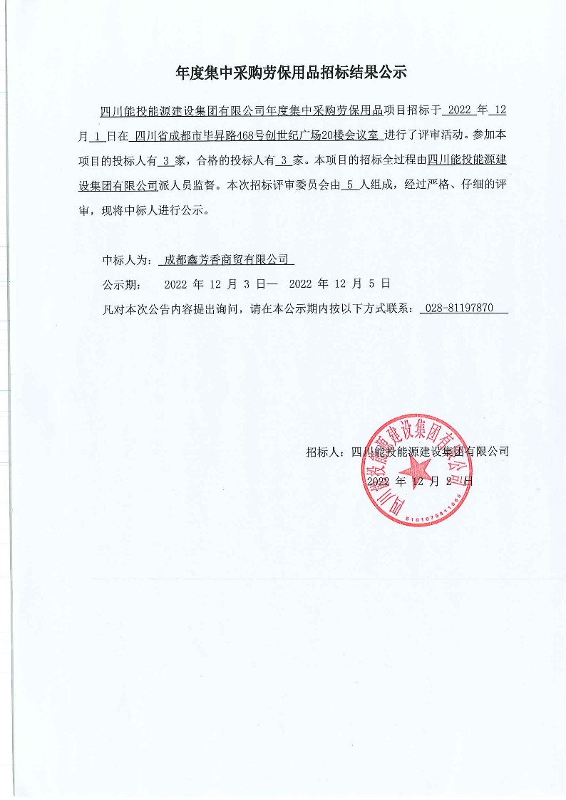 年度集中采购劳保用品结果公示