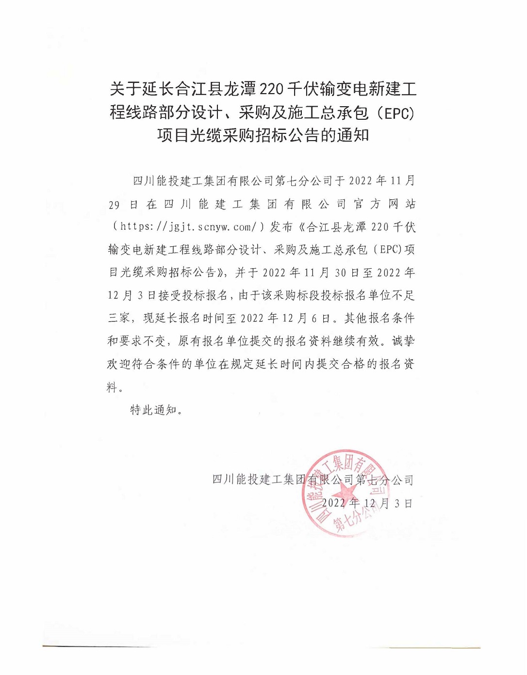 上一条:合江县龙潭220千伏输变电新建工程线路部分设计采购及施工总承包(EPC)项目施工劳务分包(四川段)招标公告
