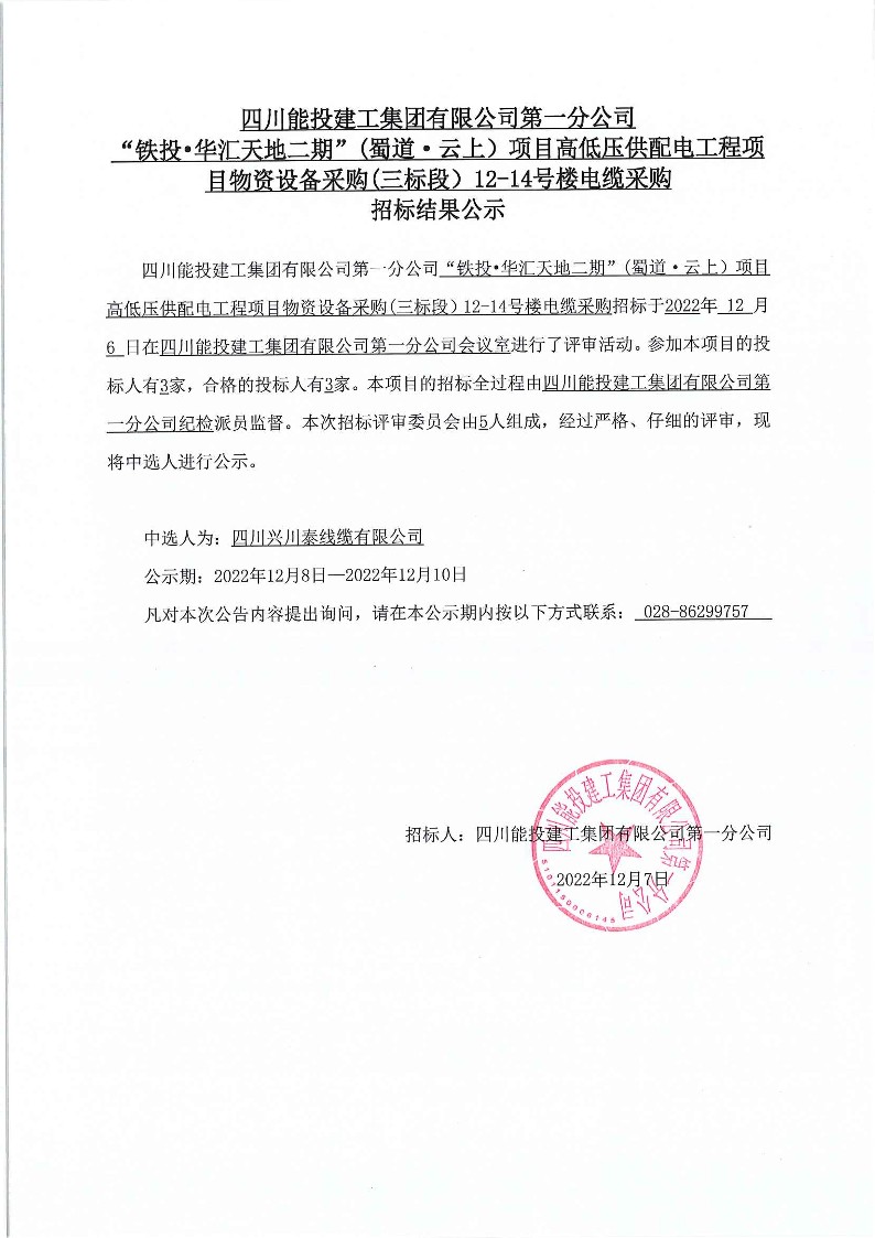 上一条:铁投.华汇二期(蜀道.云上)项目高低压供配电工程项目物资设备采购(二标段)15号楼变压器采购招标结果公示