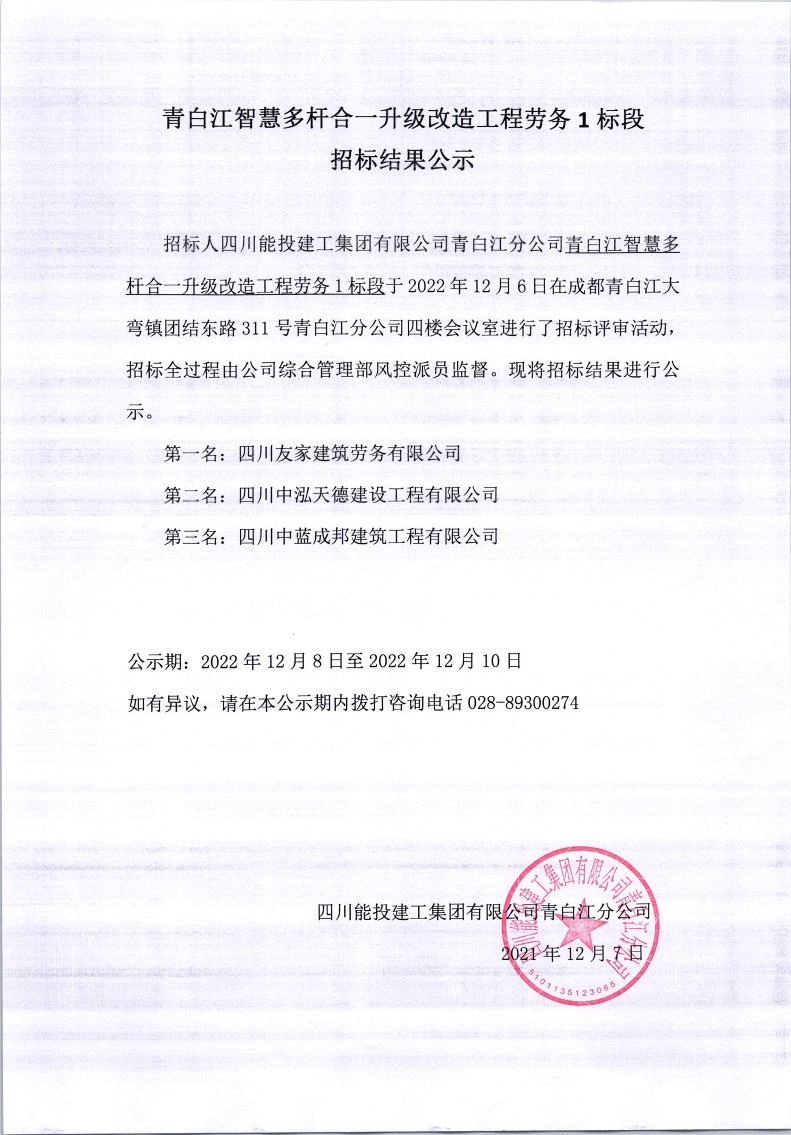 青白江智慧多杆合一升级改造工程劳务1标段招标结果公示