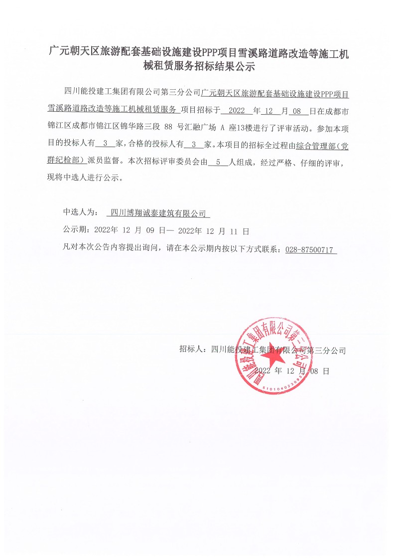 下一条:广元朝天区旅游配套基础设施建设PPP项目曾家山游客服务中心、生态停车场、望远山道路改造等施工机械租赁服务招标结果公示