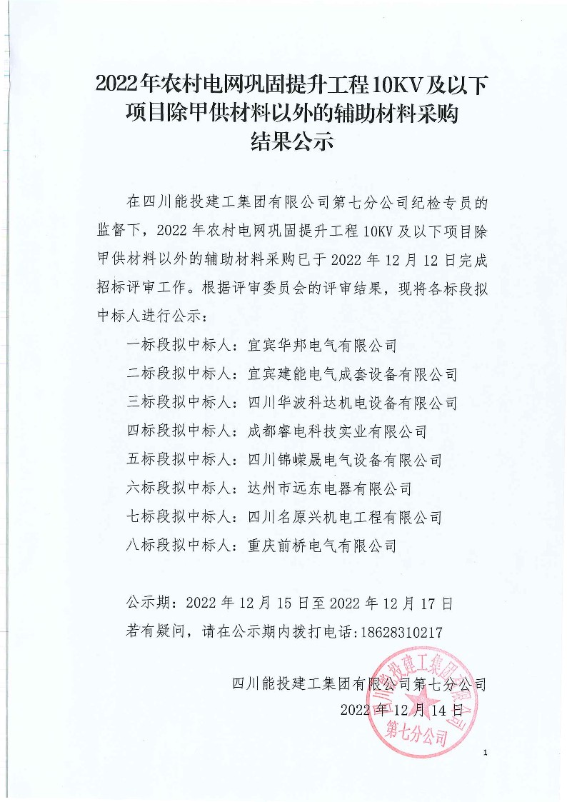 上一条:合江县龙潭220千伏输变电新建工程线路部分设计、采购及施工总承包(EPC)项目绝缘子采购中标候选人公示