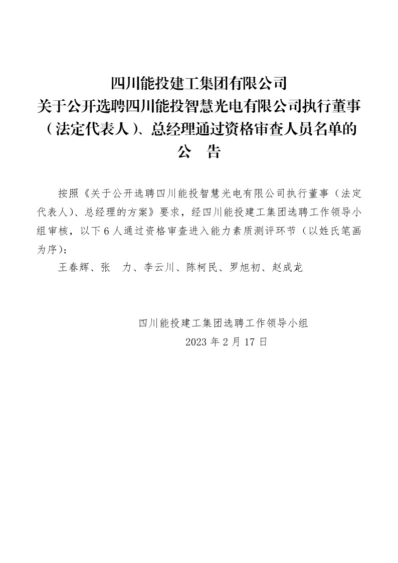 关于公开选聘四川能投智慧光电有限公司执行董事(法定代表人)、总经理通过资格审查人员名单的公告