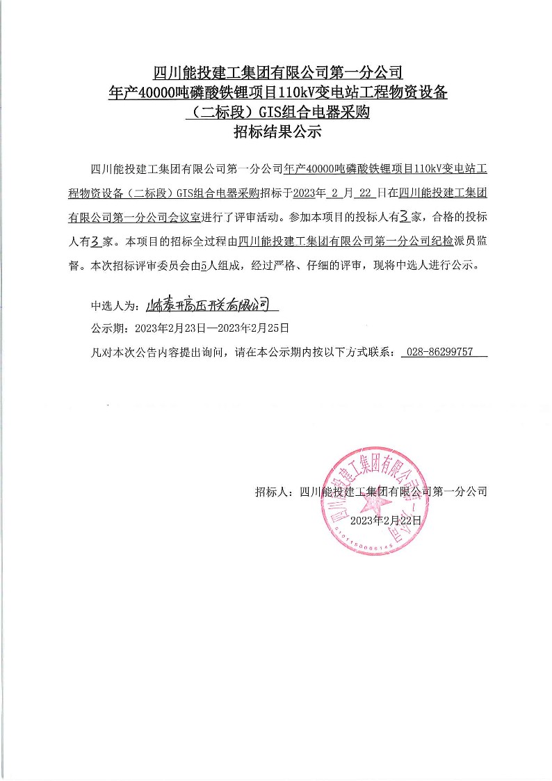 上一条:年产40000吨磷酸铁锂项目110kV变电站工程物资设备(三标段)10kV开关柜采购结果公示