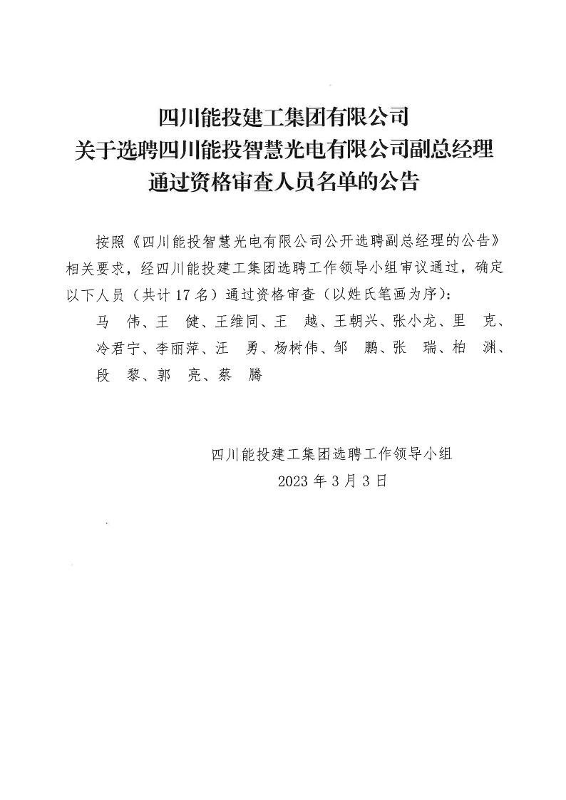 关于选聘四川能投智慧光电有限公司副总经理通过资格审查人员名单的公告