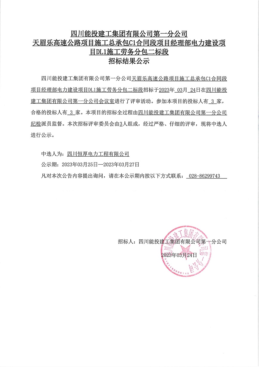 下一条:天眉乐高速公路项目施工总承包C1合同段项目经理部电力建设项目DL1施工劳务分包一标段招标结果公示