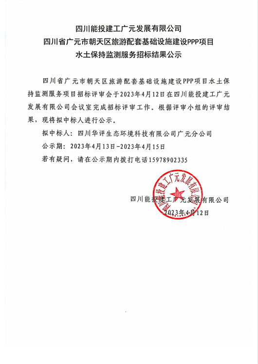 四川省广元市朝天区旅游配套基础设施建设PPP项目水土保持监测服务结果公示