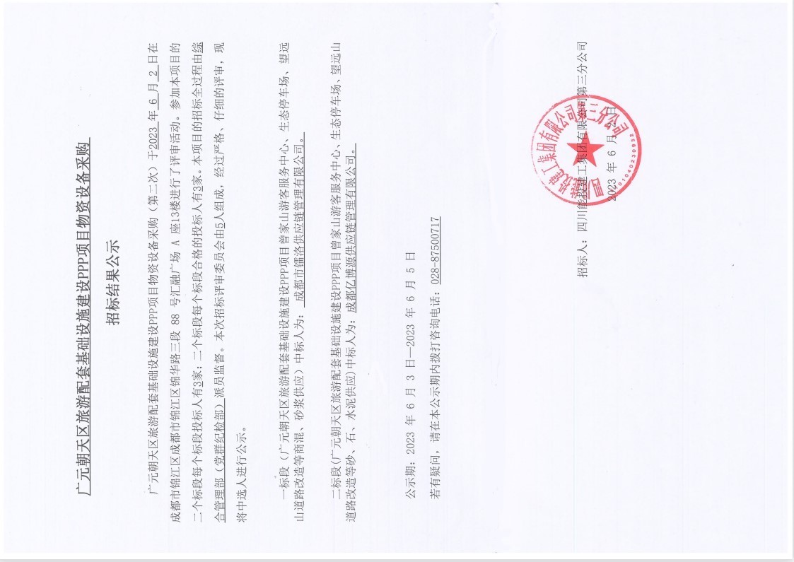 上一条:广元朝天区旅游配套基础设施建设PPP项目曾家山游客服务中心、生态停车场、望远山道路改造等建设材料供应结果公示