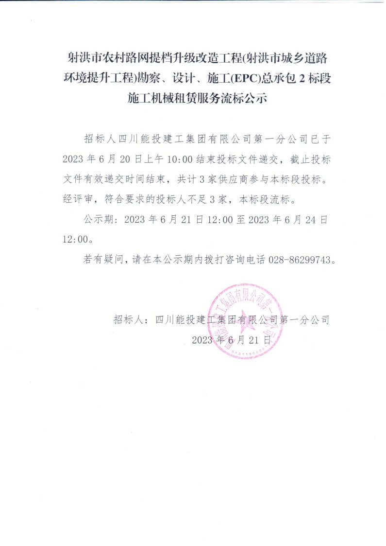 下一条:射洪市农村路网提档升级改造工程(射洪市城乡道路环境提升工程)勘察、设计、施工(EPC)总承包2标段施工劳务分包一标段流标公示